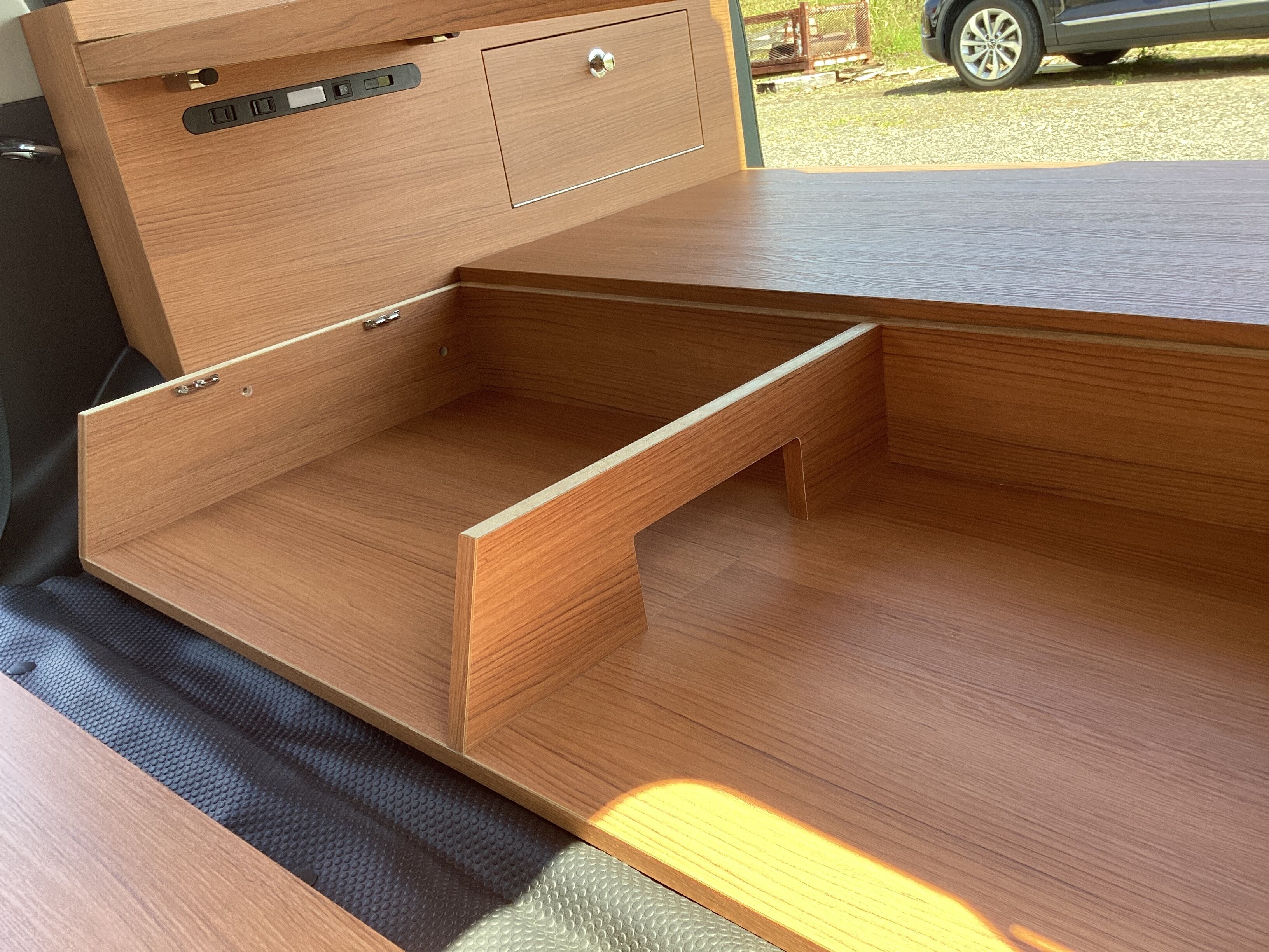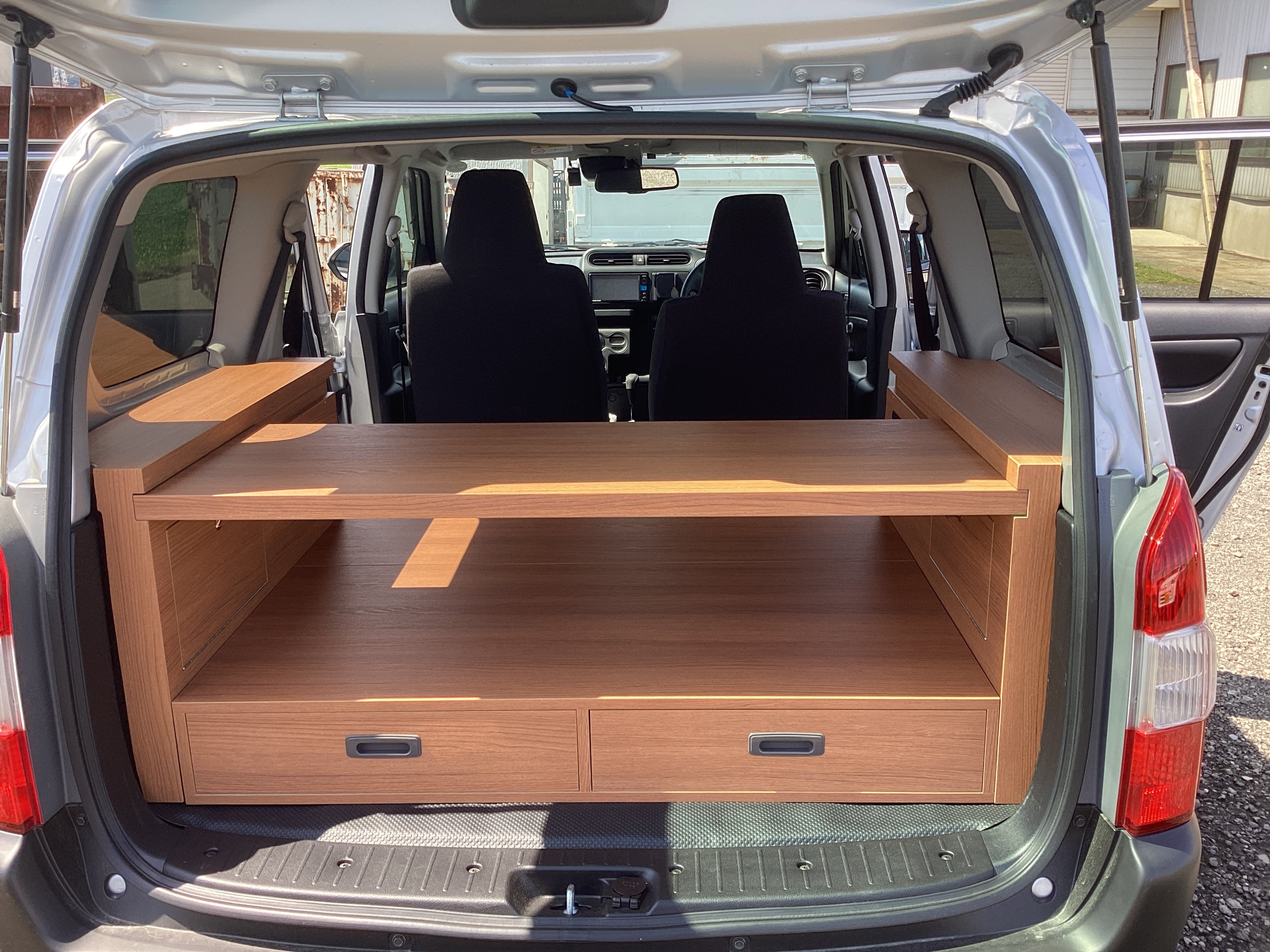プロボックスベットキットは、車内空間を最大限に活用できる便利なアイテムです。取り外しが簡単な机のデザインを採用しており、ジャッキやバッテリーの取り外しもスムーズに行えます。さらに、座席下には小物入れや引き出しが設置されており、しっかり収納できるため旅の必需品も整理整頓できます。使い心地にこだわった設計で、快適なドライブが実現。ベッドとしての機能も兼ね備えているため、車中泊を可能にし、どんなシーンでも役立つ頼もしいパートナーとなります。